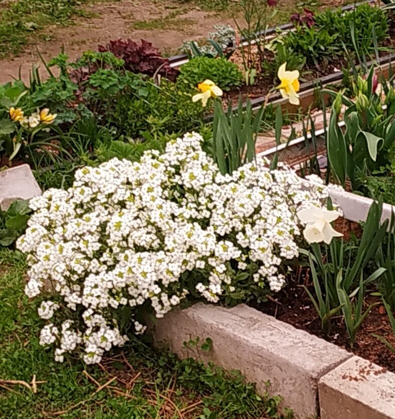 Сегодня обнаружила, что еще не писала про арабис! 🤦 Ну как так то?))) Ведь это реально один из самых лучших многолетников! Его достоинства: Он очень обильно цветет! Но, естественно на самых солнечных участках. Цветущий арабис - это просто огромная шапка цветов! У меня цвел пока только белый... Розовый приобрела где то уже осенью, поэтому пока о нем не скажу и не покажу. 😁 Листья у арабиса тоже интересные: их форма декоративна, фактура мягкая войлочная, а цвет сизоватый. Кустик смотрится декоративно и после цветения! Арабис абсолютно неприхотлив. Его можно не поливать и вообще ничего не делать несколько лет. Не могу точно сказать пропадает ли он без ухода или нет, но на горке растет у меня три года без ухода. Образала только отцветшие соцветия. Бывает, что стебли арабиса вытягиваются, начинают сохнуть у основания и могут, так сказать, выпасть. Это можно исправить стрижкой куста или его обновлением. При всей его жизнеспособности, я сталкивалась с проблемой обновления и пересадкой куст