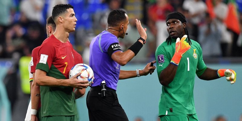 На 63‑й минуте встречи защитник ганской сборной Карим Салису нарушил правила в своей штрафной на Криштиану Роналду.