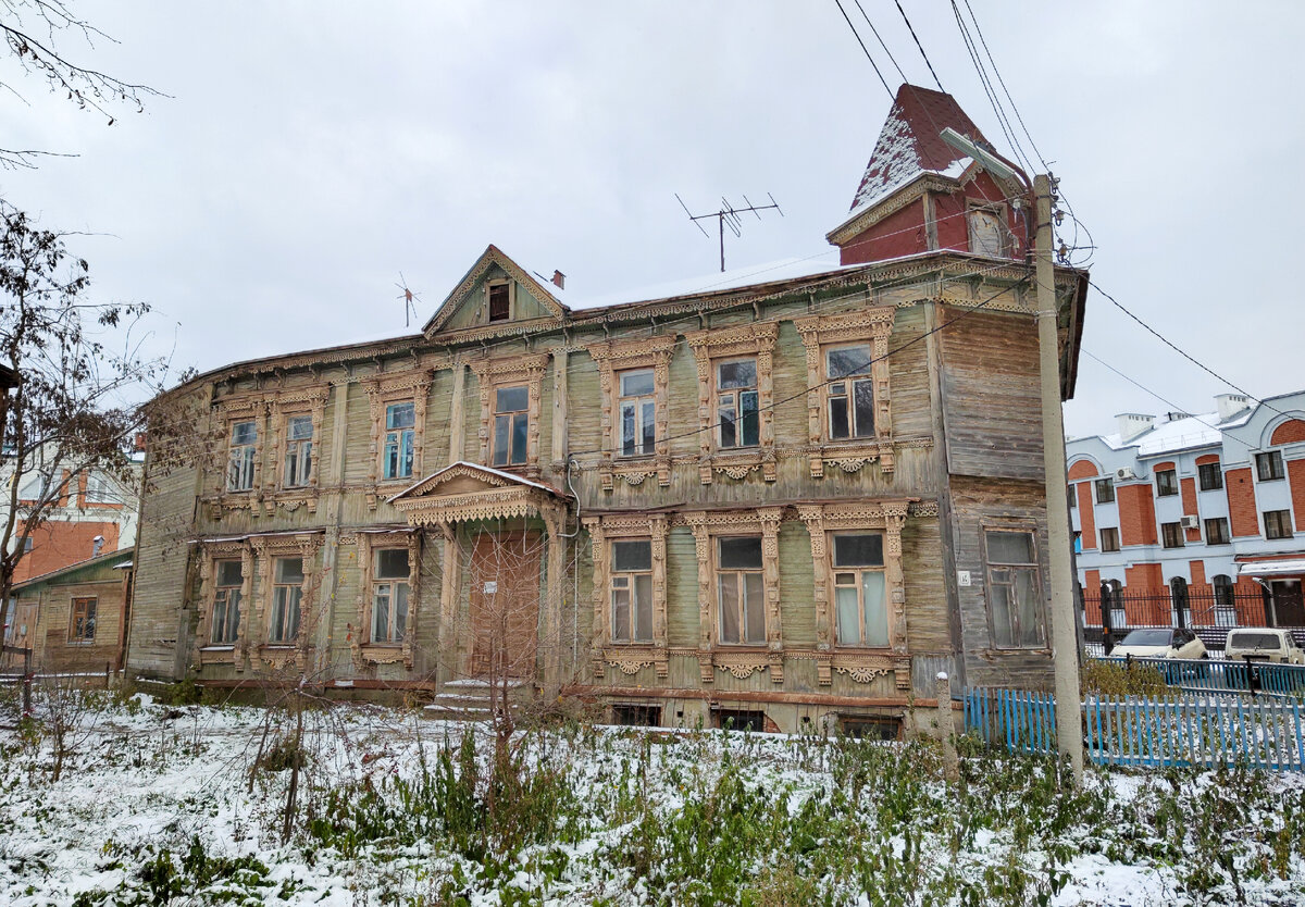 Вашему вниманию предлагается краткий обзор деревянной архитектуры города Рязани. Для тех, кто дочитает-долистает материал до конца, - небольшой бонус. Впервые я побывал в Рязани несколько лет назад (год точно не скажу, это была зима 2013, 2014 или 2015 года). Вторая поездка в Рязань состоялась 17 и 18 ноября 2022 года. Обычно во время прогулок по разным местам я пользуюсь оффлайн-картами maps.me, но на них интересные старинные образцы архитектуры и прочие здания часто не отмечены, поэтому я заранее просматриваю Яндекс-карты и помечаю достопримечательности в телефоне. Именно поэтому адреса домов не указываю - все они отмечены на Яндекс-картах. 1. Дом Овсянникова Этот доходный дом почетного гражданина А.М. Овсянникова был построен в конце XIX - начале XX века. К сожалению, судя по всему, дом сейчас нежилой. Недалеко от этого дома находится моя гостиница, которую рекомендовать не буду только лишь по причине полного отсутствия звукоизоляции в комнате. 2. Летний клуб Дворянского собрания Э