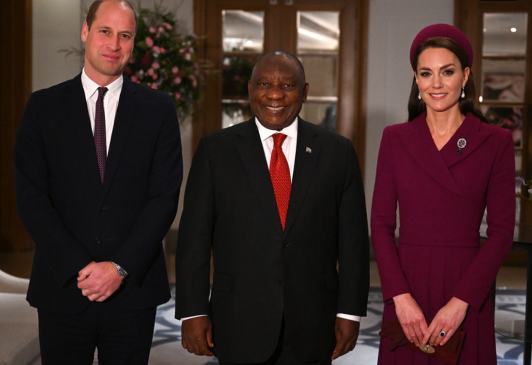 Принц и принцесса Уэльские вчера приветствовали президента Южной Африки Сирила Рамафосу в лондонском отеле Corinthia. Тем же вечером они посетили роскошный государственный банкет, устроенный в честь Рамафосу. Кейт предстала перед нами в украшенном драгоценными камнями роскошном белом платье от одного из ее любимых дизайнеров Дженни Пекхэм, когда присоединилась с принцем Уильямом к королю Чарльзу III и королеве-консорт Камилле. На белоснежном платье заметно выделялась синяя лента-поясом Дамы Большого креста Королевского Викторианского ордена и Орден королевской семьи, состоящий из портрета королевы на желтой ленте. Кейт была воплощением элегантности в своем белом ансамбле, в который она включила блестящие туфли на шпильке от Gianvito Rossi и маленький белый клатч от Alexander McQueen. Свои темные густые локоны она убрала в строгую элегантную прическу, добавив аккуратный макияж. На руке Кейт выделялся красивый жемчужный браслет. Однако все украшения затмила сверкающая тиара «Узел любви»