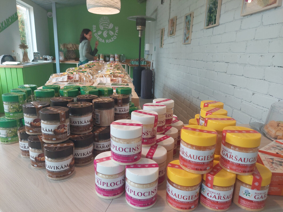 Небольшой латвийский поселок Рауна всегда находился в тени недалеко расположенного от него Цесиса и многие, проезжая его, лишь бросали взгляд на руины замка да на старинную церковь в центре. Теперь же в Рауна стала местом, куда едут специально и, как минимум, на несколько часов. И к посещению в Рауне просто обязательно предприятие «Siera ražotne», где большие и маленькие группы туристов ждут на дегустацию и рассказ о семейном бизнесе. Казалось бы, сыроварен в Латвии, много и разве можно чем-то особенным выделятся? Можно! Уникальными видами сыров и вкусными макаронами. Вот уже более 15 лет семья Цериней занимается производством сыра. Их главный и уникальный продукт – зеленый сыр с добавлением пажитника (sieraboļiņš). Эту приправу и лекарственную траву в одном флаконе они выращивают на своей земле. Сами сажают, сами полют и урожай собирают. Кстати, вычитала, что раньше пажитник называли лекарством от сорока болезней, к примеру улучшает состояние сердечно-сосудистой системы и нормализуе