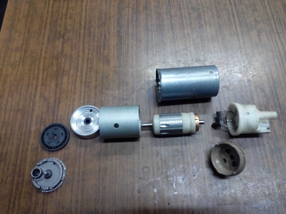 Ротор мотора герметичен, обмотки внутри. Контактные кольца для щеток с торца, что необычно.