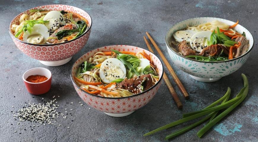 Рамен – это сытный густой суп с лапшой. Придумали его в Японии, откуда рецепт разошелся сначала по ближайшим соседям, Китаю и Корее, а потом стал популярным во всем мире. Основа любого рамена – пшеничная лапша и насыщенный бульон. ИНГРЕДИЕНТЫ