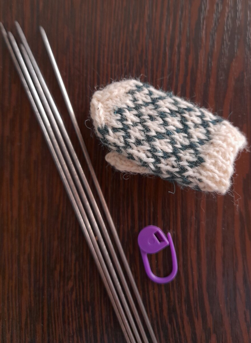 Хвастаюсь своей первой вязаной миниатюрой )) Спицы № 1,5, тонкая шерсть. В общем-то, ничего сверхтрудного. Непривычно, конечно, но и смешно было вязать. Узор вязала в технике Twined Knitting, то есть перекручивала нити по направлению к себе после каждой петли. Так получается гораздо аккуратнее. Лучше даже, чем жаккард без протяжек. Подробнее об этой технике в моем видео. Листайте галерею Здесь вы найдете множество других проектов.