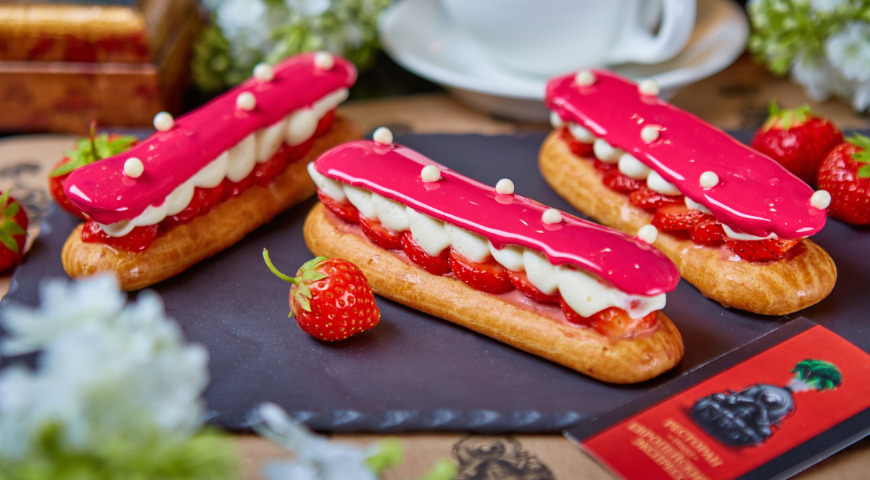 С клубничным эклером придется немного повозиться: нужно приготовить два вида теста и два вида крема. Зато результат будет стоить того: такой эклер в магазине не купишь. ИНГРЕДИЕНТЫ