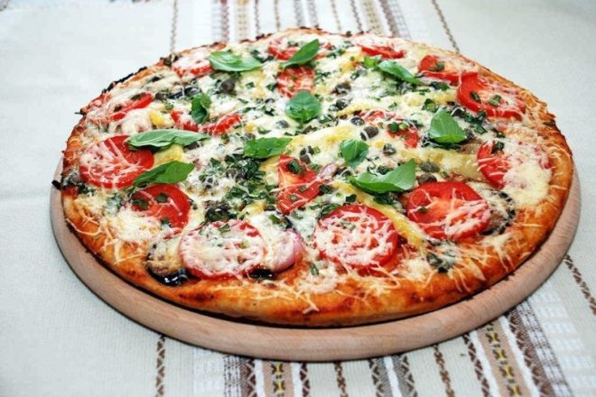 Ингредиенты тесто для пиццы перец сладкий болгарский-1-2 шт. помидоры-1-2 шт. грибы жареные-по вкусу майонез (постный или обычный)-по вкусу кетчуп-по вкусу