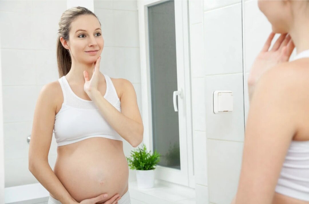 Ожидание ребёнка - это незабываемый, порой очень волнительный момент жизни у каждой женщины. Однако этот период влечёт за собой большие изменения не только во внутренней части организма, но и по внешности. Например, на лице появляются большое количество пигментации и раздражающие высыпания, а также в области малого таза образуются растяжки. Все эти изменения дают начало к первым возрастным изменениям. Поэтому очень важно ухаживать за кожей во время беременности. При чрезмерном распространении пигментных пятен на лице, рекомендуется пользоваться солнцезащитными и тональными кремами. Они способны увлажнять, тонизировать и защищать кожу от ультрафиолетовых лучей. Появление акне во время беременности несёт временный характер. Но всё же, чтобы чувствовать себя уверенной и привлекательной, следует регулярно проводить уходовые процедуры. Для очищения кожи рекомендуется использовать пенку с мягкой консистенцией, увлажнять лицо следует кремами для чувствительной кожи. А также можно применять сп
