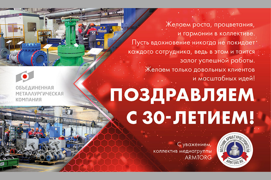 Медиагруппа ARMTORG и редакция журнала «Вестник арматуростроителя» поздравляют «Объединенную металлургическую компанию» (ОМК) с 30-летним юбилеем и желают успехов и развития!
