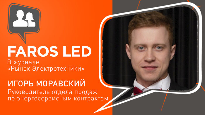 В статье «Энергоэффективные решения в светотехнике» руководитель отдела продаж по энергосервисным контрактам FAROS LED Игорь Моравский дал развернутый экспертный комментарий на данную тему. Как участник круглого стола представителей отрасли он ответил на следующие вопросы: