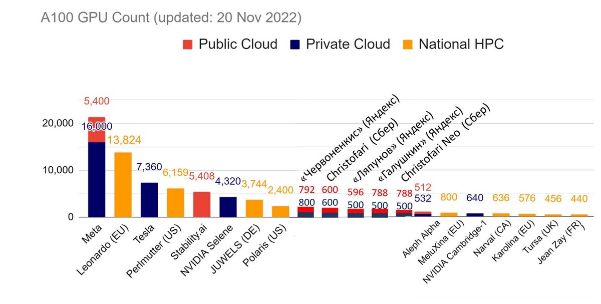 А через несколько лет оно увеличится до трёх километров Так уж получилось, что прогресс в области ИИ во многом определяется наличием огромных вычислительных мощностей, требуемых для обучения гигантских нейросетей-трансформеров. Грег Брокман (соучредитель и СТО OpenAI) формулирует это так: «Мы думаем, что наибольшую выгоду получит тот, у кого самый большой компьютер». Я уже демонстрировал, насколько критично наличие мощного компьютинга для обучения Больших моделей в посте «Есть «железо» — участвуй в гонке. Нет «железа» — кури в сторонке». Место России на карте мира по вычислительной мощности суперкомпьютеров более чем скромное. В списке ТОР500 суперкомпьютеров на этот год у США 149 систем, а у России 7. При этом, только одна из систем США по своей производительности превышает производительность всех российских систем (см. мой пост). Председатель оргкомитета суперкомпьютерного форума России, д.ф.м.н, член-корр. РАН Сергей Абрамов оценивает отставание России от США в области суперкомпьюти