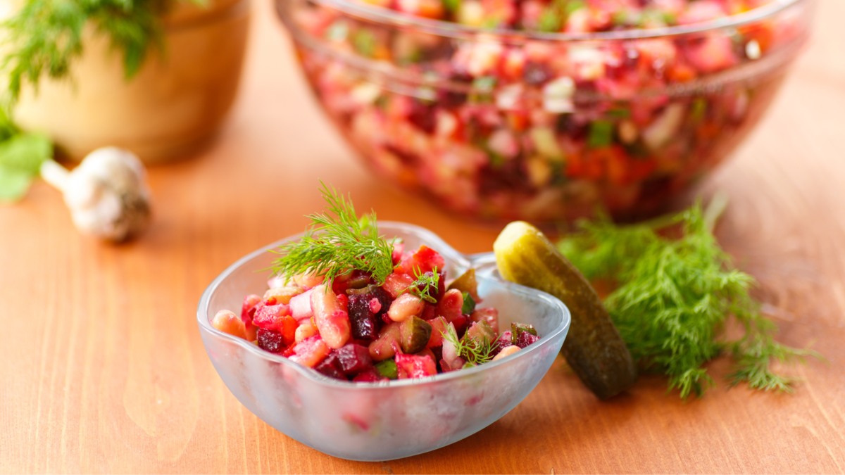 Важно! Не подавайте винегрет сразу. Дайте «отдохнуть» ему в холодильнике 2-3 часа. Перед подачей еще раз перемещайте.