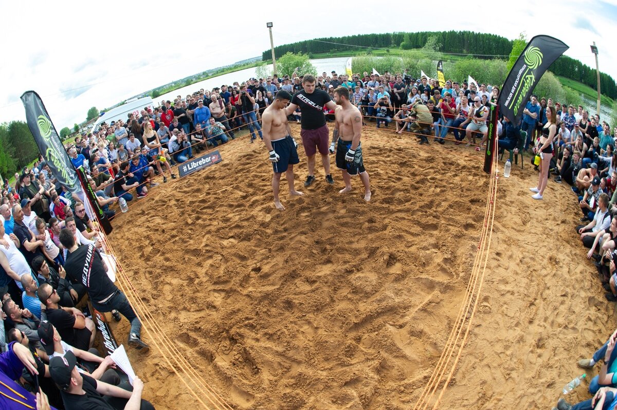 Для большей мягкости во дворе высыпали десяток мешков с песком, чтобы хоть как-то защитить конечности участников и уменьшить травмоопасность. Вместо ринга парни из «Стрелки» натянули корабельные канаты, а основными зрителями стали байкеры и автолюбители. Никаких билетов, конечно, еще не было и в помине.