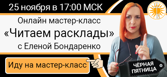 Я всегда говорю, что для того, чтобы быстро научиться понимать карты Таро, нужно просто тренироваться. Делать расклады, читать их, анализировать, как они сработали в вашей жизни и делать выводы. ⚡️ Я снова предлагаю потренироваться вместе. Хотите? 🕖 В пятницу, 25 ноября в 17:00 МСК я проведу онлайн мастер-класс и покажу, как правильно читать расклады, как трактовать сочетания карт, каких ошибок нужно избегать. ➡️ ИДУ НА МАСТЕР КЛАСС 💯 В преддверии выпуска нового курса “Таро PRO отношения” беру самую актуальную тему - анализ отношений. Статистика показывает, что 60% раскладов делаются именно на тему взаимоотношений. Взаимодействие с окружающими людьми очень важно для всех нас, и хочется, чтобы оно было максимально гармоничным. На мастер-классе мы с вами будем учиться анализировать разные виды отношений. 🔔 А ещё в Чёрную пятницу мы приготовили для вас сюрприз! Обязательно приходите! ❔ Придете на мастер-класс? Переходите прямо сейчас в отдельный Телеграм-канал, читайте внимате