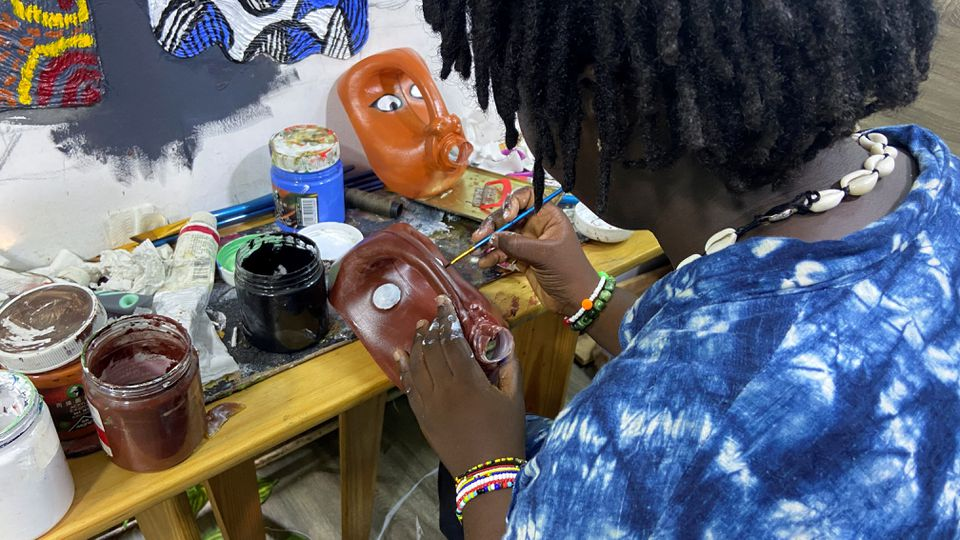 В детстве нигерийская художница Олуваджувонло Адейеми видела, как ее мать выбрасывает большие канистры из-под растительного масла, которое она использовала для своего ресторанного бизнеса в Лагосе.