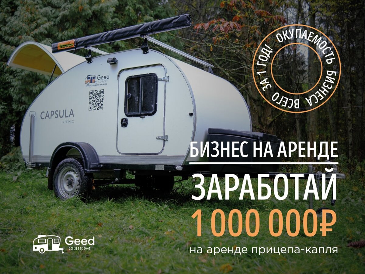 Интересный и прибыльный бизнес – сдача кемперов (автодом, прицеп-дача) в аренду. Постоянно растущий спрос, простая организация, минимум вложений в рекламу! Стабильный доход без финансовых рисков. ПОЧЕМУ СТОИТ ВЫБРАТЬ ЭТУ НИШУ – Стремительное развитие внутреннего туризма. – Растущий интерес к отдыху с домом на колесах. – Пока еще низкая конкуренция, в центральных регионах спрос превышает предложение! – Минимальные расходы на рекламу в интернете и услуги внештатных маркетологов. – Минимальные расходы на аренду стоянки (услуга нишевая, за кемперами приезжают даже в другой город). – Минимальные финансовые риски (автодома всегда можно продать). КЕМПЕРЫ, НА КОТОРЫЕ СТАБИЛЬНО ВЫСОКИЙ СПРОС Мы предлагаем прицепы типа капля Capsula – компактные и легкие. Внутри есть все для комфортного отдыха, включая полноразмерную кровать, кухню с плитой, воду, газ и электричество, а также множество мест для хранения вещей. ✓ Любой автомобиль может тянуть кемпер каплю, не нужен мощный джип. ✓ Водителю