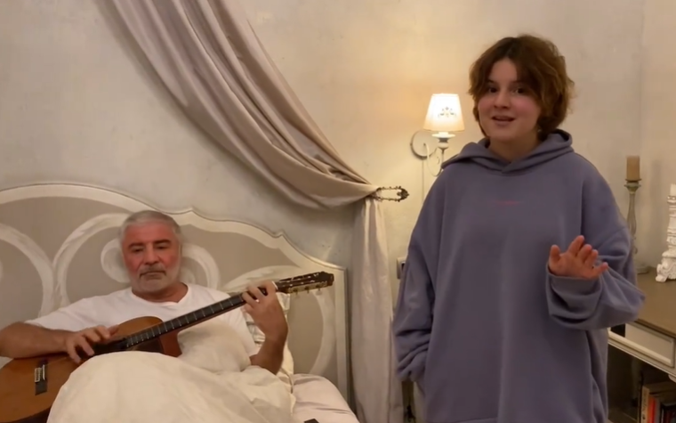 Сосо Павлиашвили опубликовал в личном блоге трогательное видео. На нем певец лежит в постели и играет на гитаре, а его дочь Сандра исполняет под аккомпанемент лиричную песню на английском языке. Родственники одарили юную исполнительницу аплодисментами. Сосо Павлиашвили заболел, на видео он не раз кашлял. Дочь таким образом решила поддержать захворавшего отца. «Пусть наши родители никогда не болеют!», - гласит подпись под видео. Поклонники восхитились вокальными способностями Сандры и оставили много комплиментов и пожеланий в комментариях: «Сосо, ты крутой ! Не только потому что ты круто поешь и пишешь песни . А ещё потому что ты воспитал такую умницу», «Какой мощный голос», «Скорейшего вам выздоровления!» Фото: социальные сети Сосо Павлиашвили Ставь лайк и подписывайся на канал МУЗ-ТВ в Яндекс.Дзен