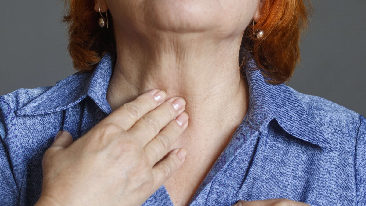 11. Необычное ощущение в области шеи и хрипота. Изменение вашего голоса или ком в горле могут быть признаком болезни щитовидной железы. Один из способов проверить это — внимательно осмотреть и пощупать свою шею.