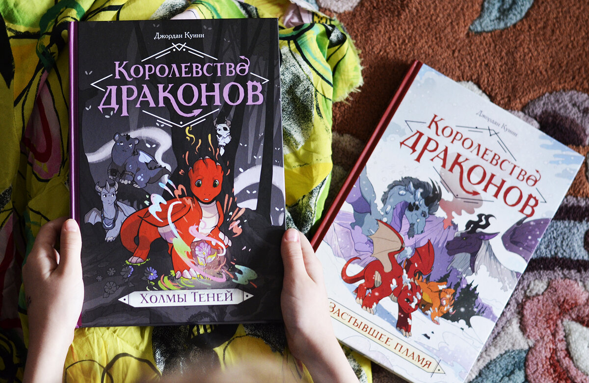 Некоторое время назад я с дочкой читала первую книгу серии комиксов «Королевство Драконов» «Королевство Драконов. Застывшее пламя» Джордан Куинн. Дочке история понравилась, а я все больше и больше разочаровываюсь в комиксах. Если коротко: существует мир с драконами, людьми, феями, колдунами и прочими волшебными существами. В этом мире начало сбываться старое проклятье из легенд. Остановить беду может только легендарный алый дракон. Им оказывается «домашний» питомец принца, живущий беззаботной жизнью во дворце у людей. В «Застывшем пламени» алый дракончик знакомится с другими драконами и помогает им остановить проклятье. Основная тема: дружба, преданность, взаимопомощь и ответственность. Вторая книга «Холмы теней» - продолжение приключений алого дракона и его друзей, с которыми он познакомился в первой части. Теперь на страну надвигается огненная буря. Есть способ ее остановить. И эту миссию поручаю «малышу» — алому дракону. «Малышу» в прямом смысле, потому что дракончик еще маленький.
