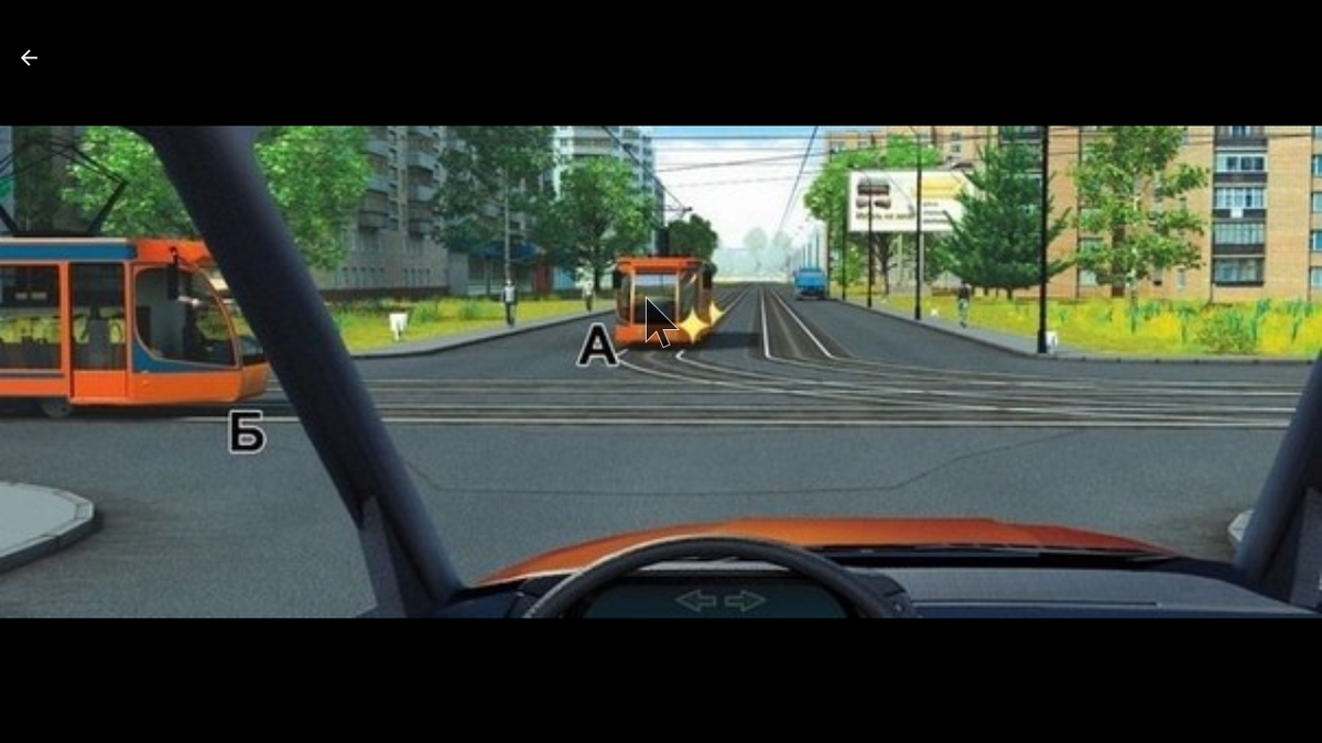 Вы намерены проехать в прямом направлении. Кому вы обязаны уступить дорогу? 1. Обоим трамваям 2. Только трамваю А 3. Только трамваю Б 4. Никому Ответы пишите в комментариях.
