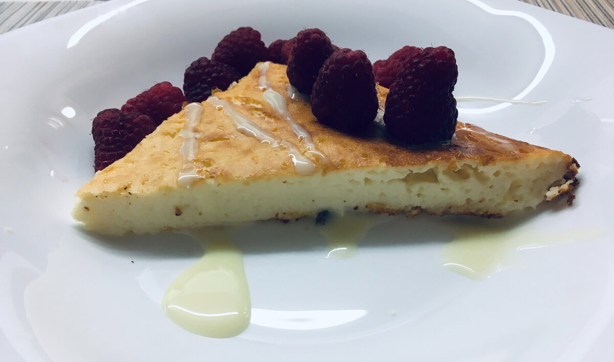 Творожная запеканка Очень люблю этот вариант запеканки, она получается очень нежной. Можно готовить в мультиварке, получается даже лучше, чем в духовке, поэтому в духовке готовлю редко Ингредиенты: 500 г. – творог 3 шт. – яйца куриные ½ ст. – сахар (стакан 200г.) 125 мл. – кефир (йогурт натуральный) ½ ст. – манка или мука (стакан 200г.) 1 ч.л. – ванильный сахар (по желанию) 1 ч.л. – разрыхлитель ¼ ч.л. – соль 1/3 ст. – изюм или цукаты (по желанию) Способ приготовления: 1. Яйца с сахаром взбить в чаше ( я обычно взбиваю блендером, но можно и венчиком), добавить ваниль, соль. Взбить. Добавить творог, я использую в основном пастообразный 5%, но можно любой. Хорошо взбить, добавить кефир, взбить, добавить муку или манку и разрыхлитель. Все хорошо взбить. Мне больше нравится вариант с мукой, запеканка получается более нежной, чем с манкой. Смесь получается довольно жидкой. При желании добавить изюм и перемешать лопаткой 2. В смазанную сливочным маслом форму вылить творожную смесь или в