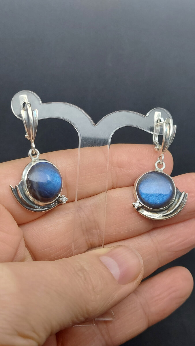Финский спектролит насыщенно синего цвета часто ассоциируют с небом. Такой же глубокий, манящий и бездонный... Наверное, поэтому заказчик попросил сделать с этими камнями бриллиантовые кометы в ночном небе. В подарок любимой дочери🌞 Посмотрите, как красиво получилось! Серебряные серьги и кулон "Комета" выполнены Юрием Радомским по собственному эскизу в единственном экземпляре.