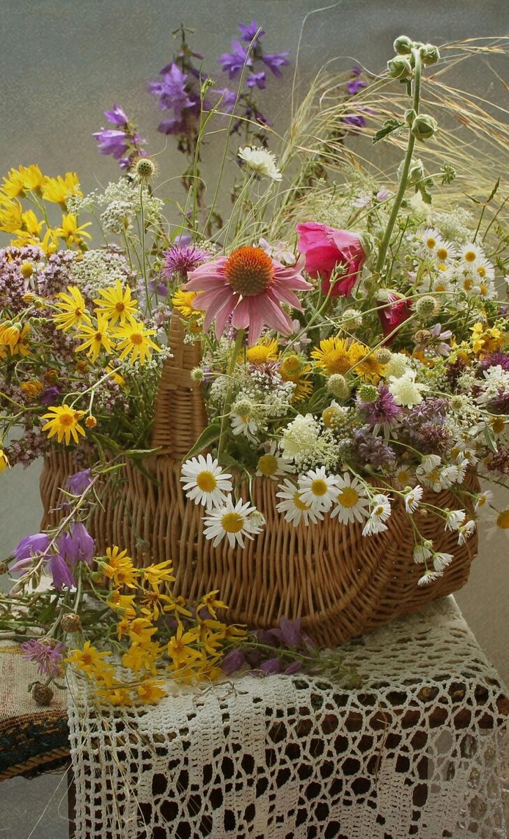 Вышла из кафе . Дождь закончился . Напротив бабушки продавали цветы , громко зазывая прохожих. Только одна сидела молча . У нее были не садовые , а полевые цветы .