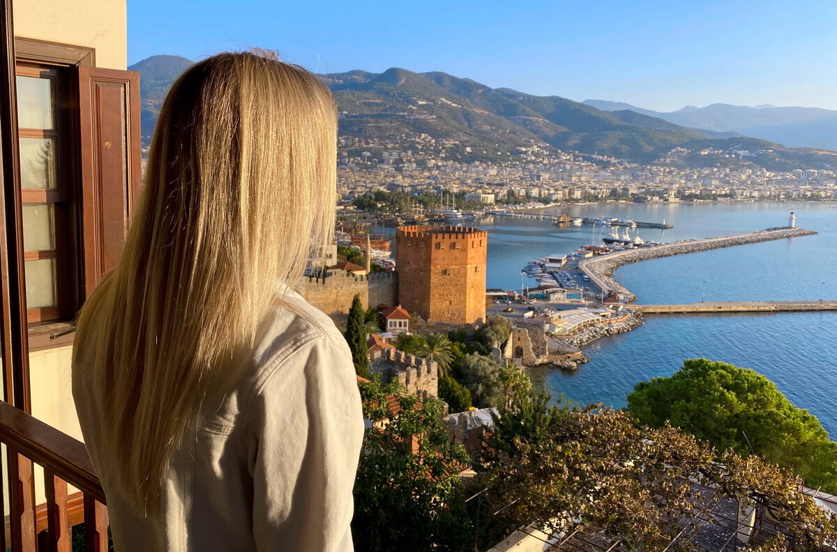 Не поверите, но это просто совпадение! Я лишь хотела провести выходные в самом необычном месте Аланьи и только потом узнала, что здесь снимали выпуск передачи «Орел и Решка». Более того, меня поселили в тот же самый номер, где жил ведущий! Расскажу вам, каким оказался отель Villa Turka в реальности. И почему я поехала именно в него (хотя не знала, что он в какой-то степени знаменит). Вы точно спросите, сколько это стоит, поэтому сразу даю ссылку, где можно посмотреть цены на размещение. Вы удивитесь, насколько доступные номера в этом отеле. Посмотрите видео – в нем я показала отель во всей красе. Крепость Аланьи Крепость – самая посещаемая достопримечательность Аланьи. Это средневековое сооружение расположено на высокой горе и окружено мощными каменными стенами. У его подножья находится самый узнаваемый символ города – Красная башня (Kızıl Kule). Именно ее изображение чаще всего встречается на сувенирной продукции. В Аланье многие стремятся поселиться в отеле, из окон которого открывае
