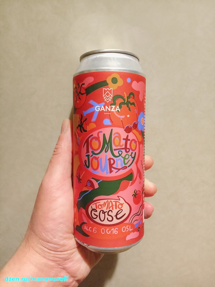 Вместе с пивом Tomato Journey от питерской пивоварни Ganza Brewery. Насколько я помню, до сих пор я не сталкивался с продукцией этих питерцев. Пусть расскажут о себе, для начала: Пивоварня из Петербурга. Объединяем академический подход к пивоварению и дух эксперимента. Краткость - сами знаете, чья сестра. Посмотрим, как у них обстоят дела с талантом варить пиво. Томатка, кстати, одна из трех в линейке Tomato Journey. Это обычная версия, а еще есть острая и копченая. Мне, к сожалению, оставшиеся две не попались. Вся линейка появилась на свет в феврале прошлого года. Почитаем описание пива: Базовый томатный гозе, слегка приправленный соусом Табаско. Ну точно, талантище. Моей банке пива было почти два месяца, когда я ее вскрыл. В составе присутствует томатная паста, соль и черный перец. А где же обещанный Табаско? ТТХ: Пиво очень густое, прямо томатное смузи. После налива в течение пары-тройки минут растет плотная пенная шапка, пытающаяся убежать из стакана. И потом пена еще долго держи