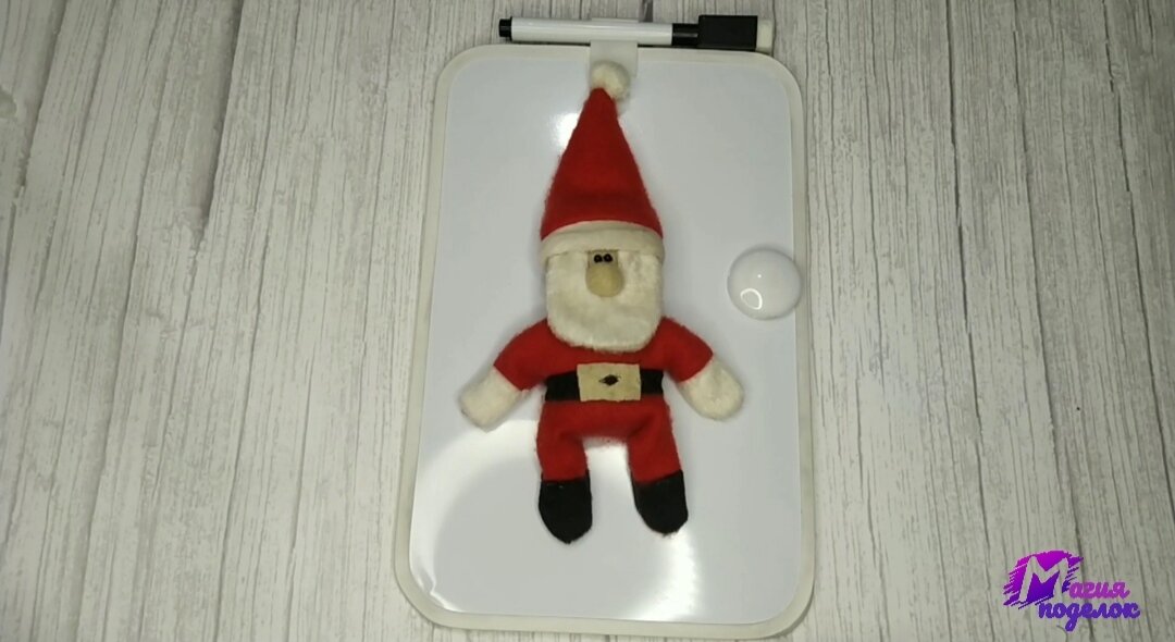 Прикольный магнит на холодильник Дед Мороз своими руками Нам понадобится 1. Нитки, иголки 2. Ножницы, линейка, ручка 3. Ткань флис или любая другая ткань. Хорошо подойдёт бархат или велюр 4. Клей пистолет, бусины, синтепон для набивки 5. Магниты Выкройка магнит Дед Мороз У меня были разного цвета обрезки ткани, флиса. Я выбрала те которые больше всего подходили для шитья дед Мороза. Раскладываем на ткани выкройки и обрисовываем Прикладываем выкройку головы к выкройки тела. Намечаем где будет пришиваться голова Вырезаем выкройку тела, ног и рук. Стачиваем руки и ноги с телом Белые выкройки это руки - притачиваем к верхней части тела, черные ноги - притачиваем к нижней части тела Скалываем иголкой и прошиваем на машинке Далее ровняем все швы и прошиваем тело Прошить на машинке бороду На выкройку шапки притачиваем выкройку меха Сгибаем две стороны и скалываем иголками Прошиваем на машинке Сгибаем пополам и прошиваем Прошиваем голову Вырезаем голову,
