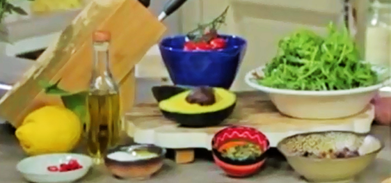 САЛАТ С АВОКАДО очень любим местными жителями. Итальянцы просто обожают свежие фрукты, овощи, травы и пряности. Жить просто без них не могут. Едят в любом сочетании, даже когда вроде бы это несочетаемо, но в их блюдах всё превращается в божественный шедевр. Авокадо итальянцы называют суперпродуктом, содержащим невероятное количество полезных витаминов-антиоксидантов, минералов и жиров, а также считают его священным афродизиаком. Его кремово-зеленая мякоть настолько богата и питательна, что применяется в элитной косметологии. Но я предлагаю рассмотреть этот суперпродукт в качестве легкого и вкусного ингредиента салата. Итак.... Для салата понадобятся: 1) авокадо - одно твёрдое (незрелое); 2) помидоры черри - 200 гр; 3) салат руккола - 80 гр; 4) оливки солёные - 50 гр; 5) тыквенные семечки - 20 гр; 6) лимон - 1 шт; 7) оливковое масло - 40 мл; 8) перец чили - 2 шт; 9) соль - по вкусу. Начинаем.... Берём лимон и отжимаем из него весь сок в заранее приготовленную банку. Затем в бан