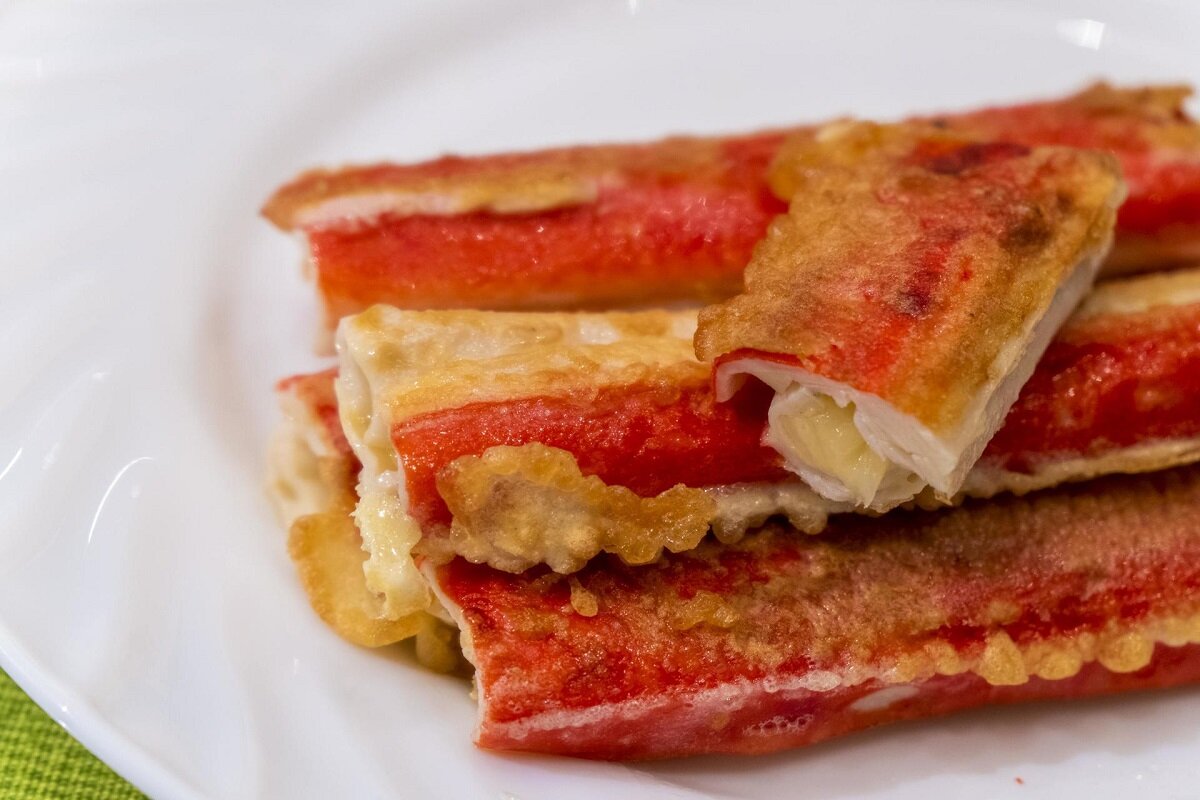 • оливковое масло Рецепт крабовых палочек с чесноком готовим следующим образом: В сковороде разогреть оливковое масло, добавить нарезанный острый перец и обжарить. Через 1 минуту добавить очищенный и тонко нарезанный чеснок, еще через минуту добавить нарезанные крабовые палочки и жарить 5 минут, периодически помешивая. Приправить солью и подавать. Приятного Вам аппетита!