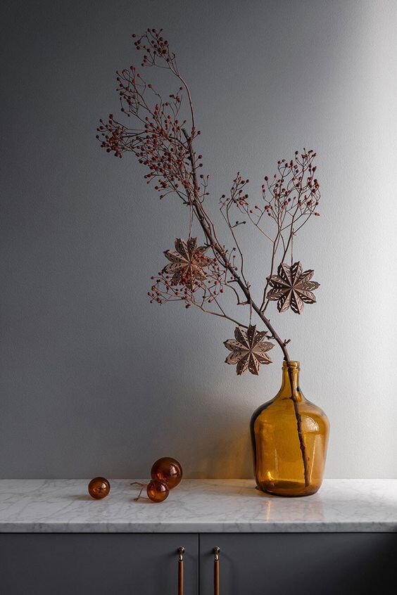 А вы замечаете, как с приближением декабря в воздухе начинает ощущаться предпраздничное волнение, будто каждое сердце ежеминутно ждет новогоднего чуда? Сегодня поделимся секретами, как впустить праздничное настроение в дом уже сегодня и сделать атмосферу хмурого ноября легкой и уютной! Достаточно добавить в дом несколько простых декоративных элементов :) Поехали! 1.Зимние декоративные ветви Легкие и изящные декоративные ветви - натуральные и искусственные - хорошо украшают интерьер в любое время года, но в зимнее время они особенно уместны. Разместите высокую ветвь (с ягодками или без) в интересной бутылке или вазе, и украсьте стильными лёгкими игрушками, подобно ёлке. Выглядит уютно и привносит особый шарм в интерьер :) 2.Хвойные "букеты" Вариант довольно очевидный, но не менее эффектный и очень ароматный!Замечательно будет смотреться вместе с нитью гирлянды-росы, игрушками, лентами. Также получится особенно интересно и живо, если выбрать веточки с шишками, или прикрепить их самостоя