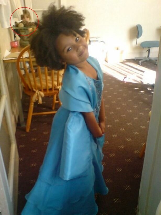 В мире есть много относительно правдоподобных фотографий призраков из прошлых столетий. Стиль их одежды и аксессуаров указывает нам на конкретные эпохи. Но что насчет призраков из будущего? Лора Сисс из Ска́рборо , Англия сфотографировала свою 5-летнюю дочь Айешу в прекрасном голубом платье. У Айеши не было друзей, пока она не пошла в школу, поэтому остаётся загадкой, как эта незнакомая девчонка оказалась на заднем плане? И почему эта девочка так похожа на младшую сестру Айеши Софи, которой на тот момент было всего 3 года? Мать девочек и другие члены семьи не знали, что это за ребенок, они не узнавали его до тех пор, пока не увидели фото на фейсбуке 10 лет спустя. Лора сразу подумала: «Что Софи делает на этой фотографии?». Это просто невозможно! Есть только одно объяснение - на фото оказался призрак из будущего!