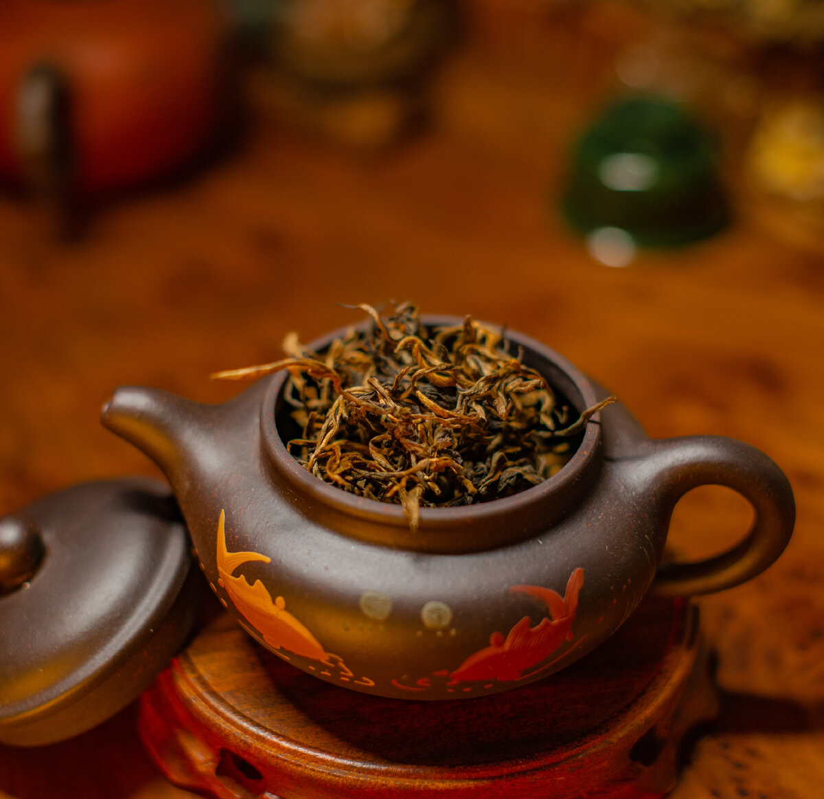 Во время чайной церемонии все должно быть прекрасно, начиная от сорта чая до сервировки чабаня. Особенно тщательно нужно подойти к выбору чайника, ведь от него зависит качество чая и успех мероприятия. Чайник может быть металлическим, стеклянным, но традиционно для заварки используется глиняный, круглый, на трех ножках с удобной ручкой. Такой чайник прекрасно наполняет пиалы, не проливая на стол драгоценных капель. Натуральная глина удерживает температуру, сохраняя внутри кипяток, а снаружи – комфорт для рук. Традиционно для разных видов чая используется несколько чайников, чтобы не смешивать вкус и аромат. Считается, что чайники для чайной церемонии сочетают в себе душу (шень), форму (син), энергию (ци) и образ (тай). Самые церемонные из церемониальных делают из исинской глины. Она обладает оригинальными характеристиками. Глиняный чайник не должен стоять в серванте для красоты – им нужно постоянно пользоваться, чтобы глина не сохла и не появилась течь. Глиняный чайник не отмывают от