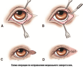 Заводчики должны знать об этой патологии и стараться не использовать в разведении собак с выраженным медиальным веком. Лечебного решения проблемы перекрута медиального века не существует. Поддержать роговицу симптоматической терапией возможно, но устранить причину терапевтическими методами невозможно. Ни один блот не может удалить волоски, которые травмируют роговицу. Это правда. Единственным полным решением проблемы является пластическая операция медиального канта, целью которой является удаление измененной части ребра. Классические операции по устранению перекрута век не могут дать удовлетворительных результатов. Успех лечения напрямую зависит от стадии патологического процесса. Если медиальное подергивание век быстро заживает, то велика вероятность того, что такая собака не будет нуждаться в особом уходе в отношении медиального подергивания и его последствий до конца жизни. Если подергивание медиального века уже вызвало серьезные изменения роговицы и снижение выработки слезы, результатом операции может стать собака, которая не испытывает раздражения от контакта с шерстью и роговицей, но будет нуждаться в пожизненном приеме местных препаратов. Интенсивность зависит от степени повреждения роговицы. Если собака уже ослепла из-за сложных изменений, вызванных медиальным перекрутом век, такому животному требуется удаление медиального перекрута век, устранение пигментного кератита и пожизненное применение топических препаратов.