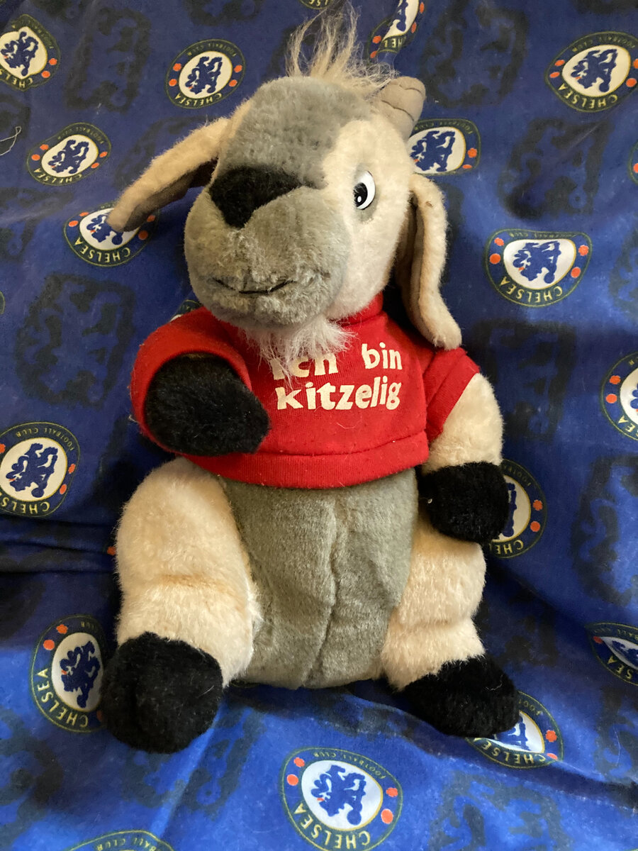 Ну так вот, мы с Максом принесли из секонд-хенда вместо куртки эту козу Зою, посадили её в кресло, и Максик, само собой, кинулся играть с новой игрушкой.