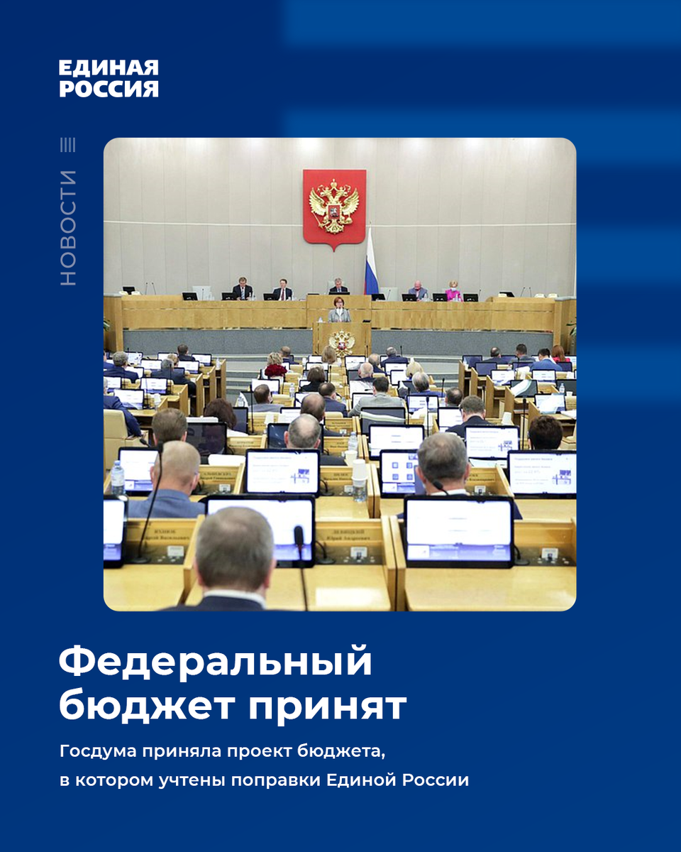 Госдума приняла проект федерального бюджета на 2023-2025 годы. В нем учтены поправки Единой России, которые были предложены во втором чтении. Они помогут реализовать народную программу партии. Согласно проекту бюджета на социальную сферу будет потрачено на триллион рублей больше чем годом ранее. Увеличится финансирование здравоохранения, образования и сферы ЖКХ. По предложению Единой России дополнительные средства направят на профессиональную подготовку и повышение квалификации работников, программу социального контракта, обучение участников студотрядов и молодежное предпринимательство.