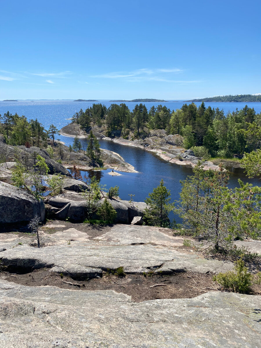 Да-да, Карелия как Норвегия и Финляндия, край шхеров. Шхеры это мелкие скалистые острова, разделённые проливами. Ну а ладожские, потому что расположились они на Ладожском озере.⠀ Полюбоваться шхерами было решено, катаясь по озеру на катере, а затем поднявшись на «крышу Ладоги» - это самая высокая точка на острове Хонкасало. Цена такой экскурсии 2 тысячи с человека, но это того стоило. Красота конечно невероятная.
