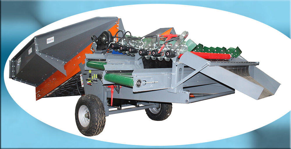 К тому же, сортировочные валы, изготовлены, из мягкого полиуретана, данное, гарантируют, бережливую и первоклассную сортировку овощей. Кроме того, усиленная резинотканевая лента, донного транспортера, дает высокую прочность функции оборудования.