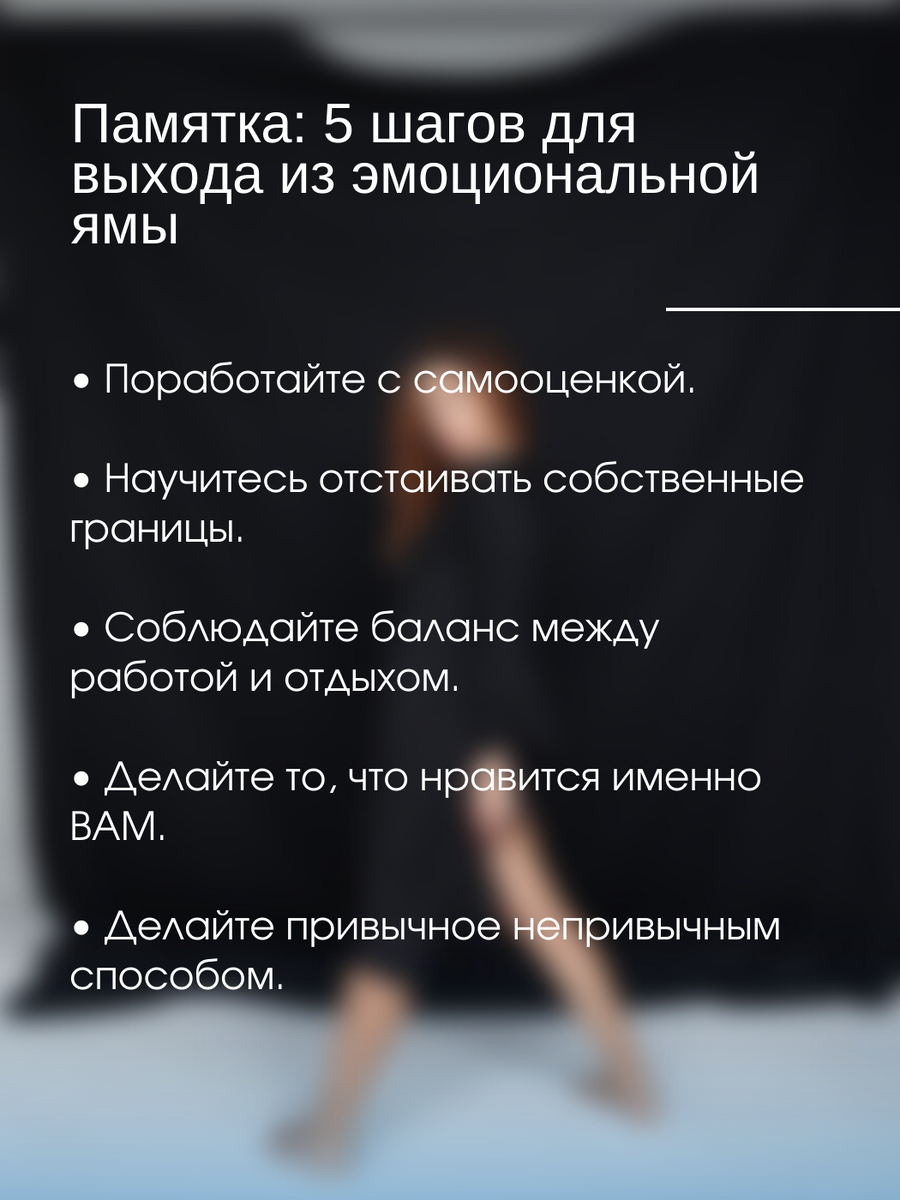 Памятка: 5 шагов для выхода из эмоциональной ямы.