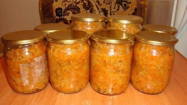 Вкусный и в тоже время простой рецепт солянки а зиму. Такую заготовку можно просто разогреть в сковороде или в микроволновке и никакой ужин готовить не нужно. 🔥 Лучшее в телеграм: Посмотреть Ингредиенты: Способ приготовления: Шаг 1. Подготовьте овощи. Хорошенько промойте, и удалите все ненужное. Капусту тонко нашинкуйте. Натрите на мелкой терке морковь. Нарежьте помидоры кубиками. Лук мелко нарежьте. Шаг 2. Сложите все овощи в кастрюлю и поставьте ее на огонь. Добавьте необходимое количество масла, соли и сахара. Хорошо все перемешайте. Шаг 3. В процессе готовки овощи дадут сок, его нужно довести до кипения. После чего добавьте лавровый лист, перец и томатную пасту. Перемешайте все ингредиенты и тушите солянку 40 минут. Шаг 4. За 10 минут до окончания варки добавьте столовый уксус. По истечении времени готовую солянку разложите по стерилизованным банкам и закройте крышками. Заготовки переверните вверх дном, накройте полотенцем и оставьте до полного остывания.
