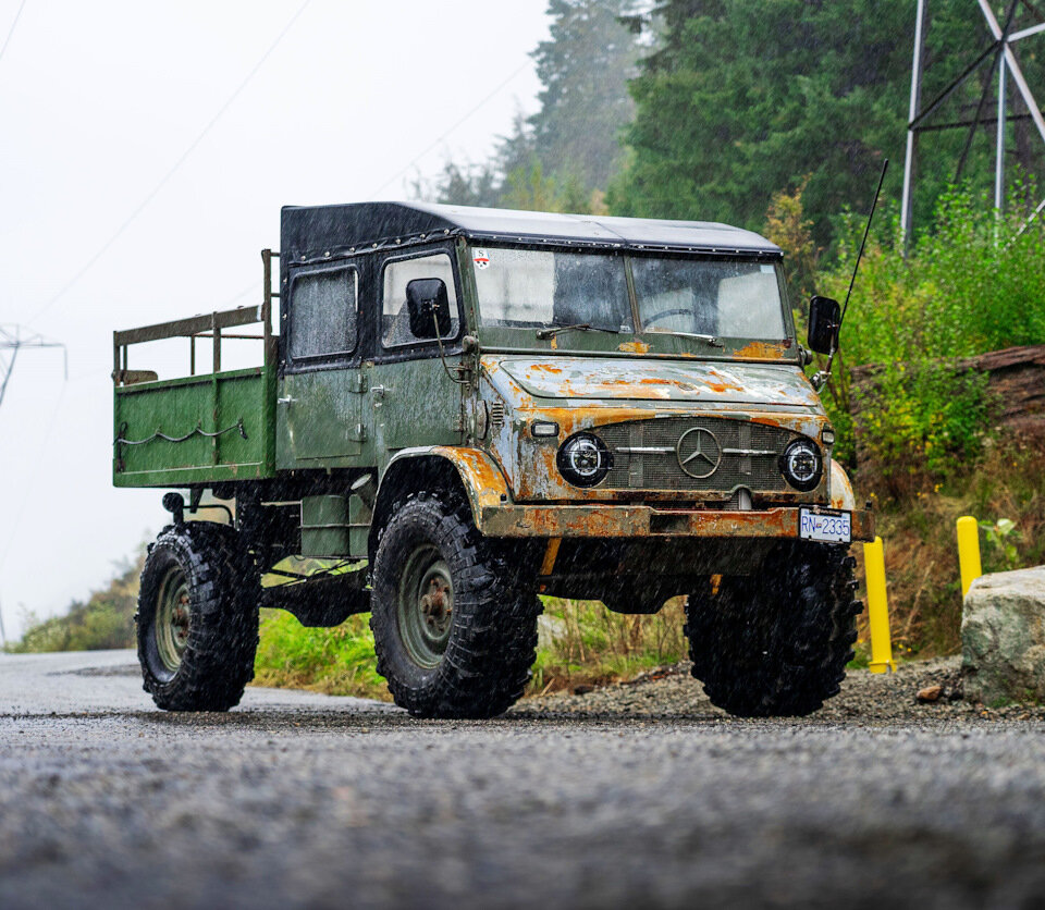 «Это самая весёлая штука, которую мне приходилось водить», — признаётся Риджи, протягивая руку, чтобы переключить передачу. Дома в Северном Ванкувере у него есть небольшая коллекция автомобилей, состоящая в основном из импортированных Ниссанов Skyline поколения R34. Летом он действительно ездил на работу за рулём своего Унимога. Это был не самый удобный и комфортный выбор, но, по его словам, он превращал каждую поездку в сафари.