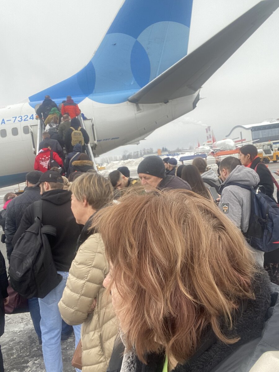 РЕЙС DP 6901… Компания «Победа». 24.11.22. Если не долетим, отомстите за нас!!! Мало того, что мне пришлось открывать чемодан, который я собиралась сдать в багаж из-за 100 мл дезика, рейс задержали на час. Но это не все! Привезли на поле и - внимание - не меньше 15 мин держали в автобусе на поле. При это у них рации, связь есть. А как с мозгами? —Выходим? - постоянно спрашивал мальчик, который еще в зале ожидания поздоровался со мной и спросил мое имя. Я тоже хотела бы спросить. Но молчала. Уже рядом стоящая женщина постучала водиле с просьбой открыть двери. Он скрестил руки, мол, не положено. —Кондер включите, душно, - крикнула я. Он нажал на какую-то кнопку, но не помогло. —Экипаж увезли, - сказала женщина. - Наверное, что-то с самолетом. —Тогда лучше посидим, подождем, - это уж мой ответ… Вот так и живем! Пушкин нервно курит в уголке. Все ж он так не лажал, а Аэропорт в его честь назвали!😃 Нас вернули в зал ожидания. Лопнуло колесо. Вовремя заметили трещину. Но тревожно. С