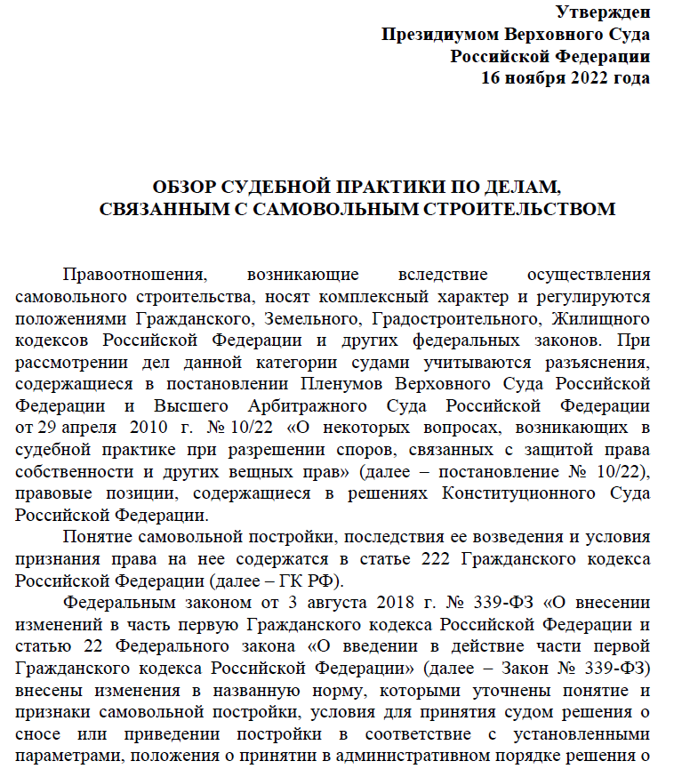 Вышел свежий обзор судебной практики по применению ст. 222 ГК РФ о самовольных постройках. Оригинал тут 👉 https://www.vsrf.ru/documents/all/31768/