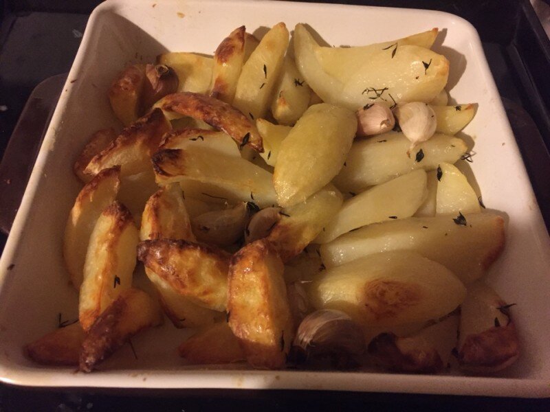 Заправляем картошку и отправляем обратно в духовку еще на 40 минут пока картошка не покроется красивой корочкой.