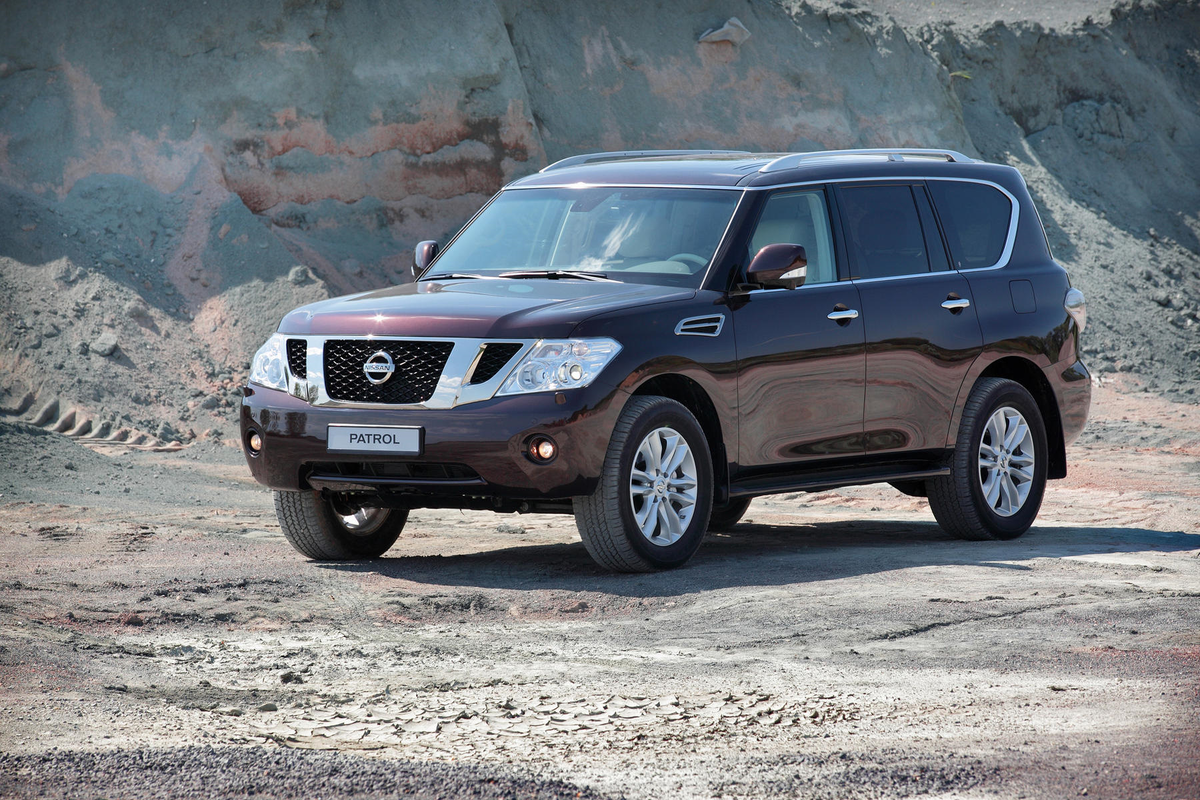 Nissan Patrol — классический внедорожный автомобиль с рамной конструкцией кузова и зависимой подвеской. Европейская комплектация предполагает два варианта двигателя: З-литровые 160-сильные турбодизели, оснащенные пятиступенчатой «механикой» или 4-ступенчатой АКП, а также 4,8-литровые 245-сильные бензиновые атмосферные двигатели, агрегатированные 5-cтyпенчатыми автоматами с возможностью ручного переключения передач. Все Nissan Patrol предлагаются только в 5-дверных кузовах (укороченные версии в З-дверном кузове в нашу страну не поставляются) и двух комплектациях "Elegance" и "Luxury". Минимальное число пассажиров — 5, а максимальное — 7. В последнем случае в багажнике стоят дополнительные сиденья, которые при отсутствии в них необходимости складываются и размещаются в таком виде вдоль бортов. Задние кресла Nissan Patrol не только складываются, открывая доступ в багажник, — подобно передним, но и снабжены продольной регулировкой. Объем багажника без третьего ряда сидений 668 литров, но