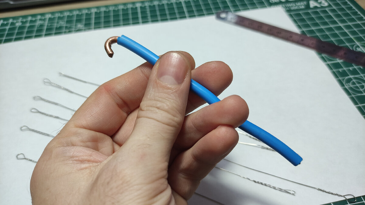 Эти поводки можно делать даже на рыбалке за считанные минуты, нужен один инструмент, который есть у каждого в доме. И маленькая оснастка, которую мы сейчас сделаем. Нам понадобиться изготовить крючок из любого материала. Это может быть гвоздь или медная проволока. В моём случае это медная проволока толщиной 4мм, можно взять и тоньше. Понадобиться отрезок длиной 10см (с изоляцией, так будет удобнее) чтобы рука держала её полностью. А так же любые плоскогубцы, что есть у вас под рукой. Желательно чтобы они могли откусить проволоку для поводка. Проволоку для проводка использую из нержавеющей стали 0.4мм. Её можно купить на Озоне или использовать провод Полевка, в ней проволока диаметром 0.3мм Если вы хотите сделать поводок на рыбалке, то разумно будет использовать маленькие пассатижи, что бы не таскать с собой тяжёлые плоскогубцы. Вот что в итоге мы получим. Скрутку и отличный поводок. Что нам понадобиться: 1. Нержавеющая проволока 2. Крючок из медной проволоки. Толщина от 2-4мм 3. Плоск