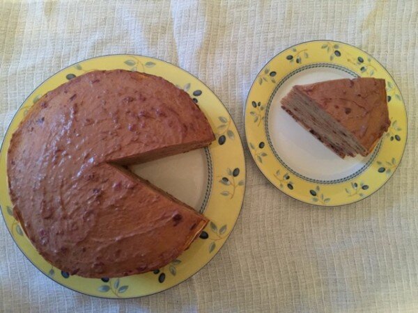 Смазать блины, формируя торт. Оправить тортик в холодильник на пару часов.