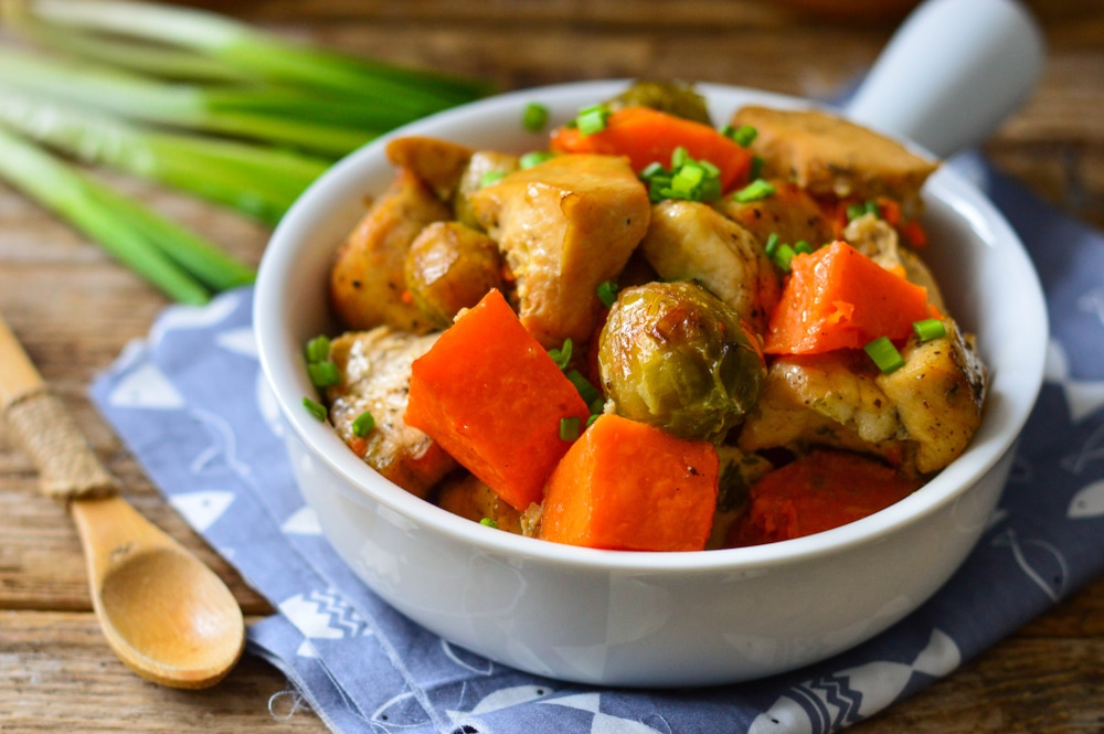 Что приготовить на ужин, чтоб было не только вкусно, но и полезно? Тогда курица, запеченная с тыквой и брюссельской капустой – именно то блюдо, которое нам нужно. Получится яркое, красочное, ароматное, и главное вкусное блюдо. Для тех, кто придерживается правильного питания – это блюдо просто находка. В нем правильное сочетание белков, углеводов и витаминов.