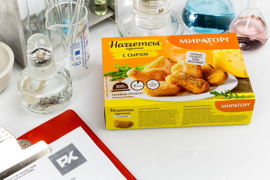 - В составе присутствует достаточно много ингредиентов не предусмотренных классической рецептурой наггетсов. Содержание панировки довольно высокое — 33%. Сыр (фактически не сыр, а аналог сыра) присутствует в незначительном количестве. Имеет недостатки в аромате: аромат пряностей и сыра недостаточно выражен.